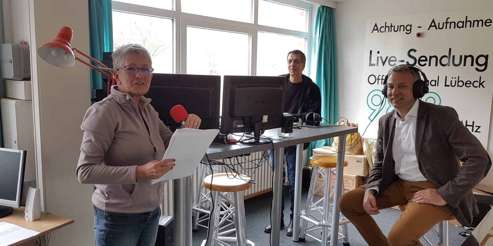 Das Außenstudio Ratzeburg produziert die nächste Sendung – mit Sicherheitsabstand und Bürgermeister Gunnar Koech.