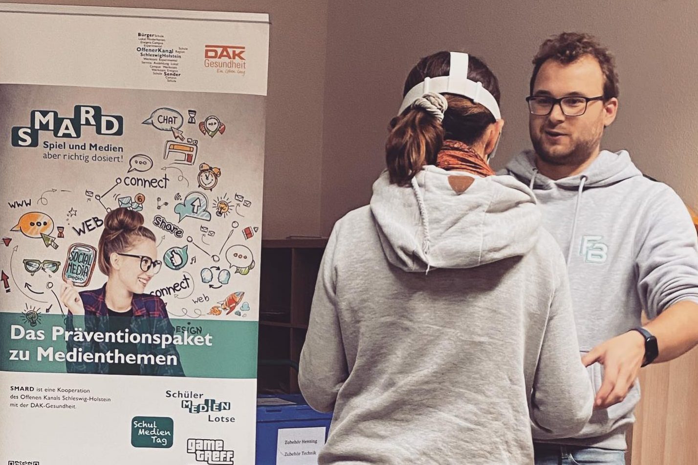 Langsam wird es: Probeaufbau für den digitalen Jahrmarkt beim MeKo-Festival SH in Kiel – die „digital sandbox“ ist nur eins von vielen Exponaten. Sie flankieren die über 40 Workshops und Inputs. An zwei Tagen geht es um Medienerziehung, Medienbildung, Unterricht, KiTa und Jugendzentren. Kreative Medienkompetenz kann man dabei auch draussen erweitern – mit Sand, LIDAR-Scanner…