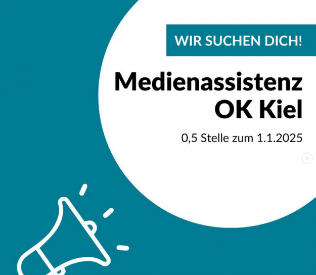 Zum Januar besetzen wir eine 0,5 Stelle Medienassistenz bei uns im Offenen Kanal Kiel neu.