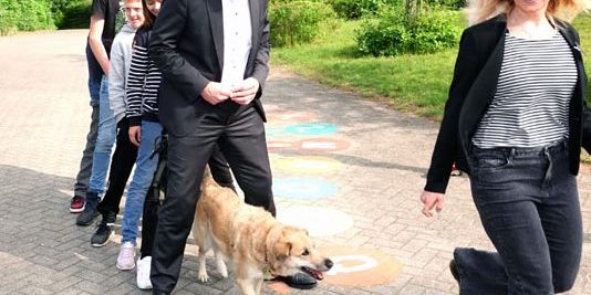 Ministerpräsident mit Schulhund durch das Trave Gymnasium