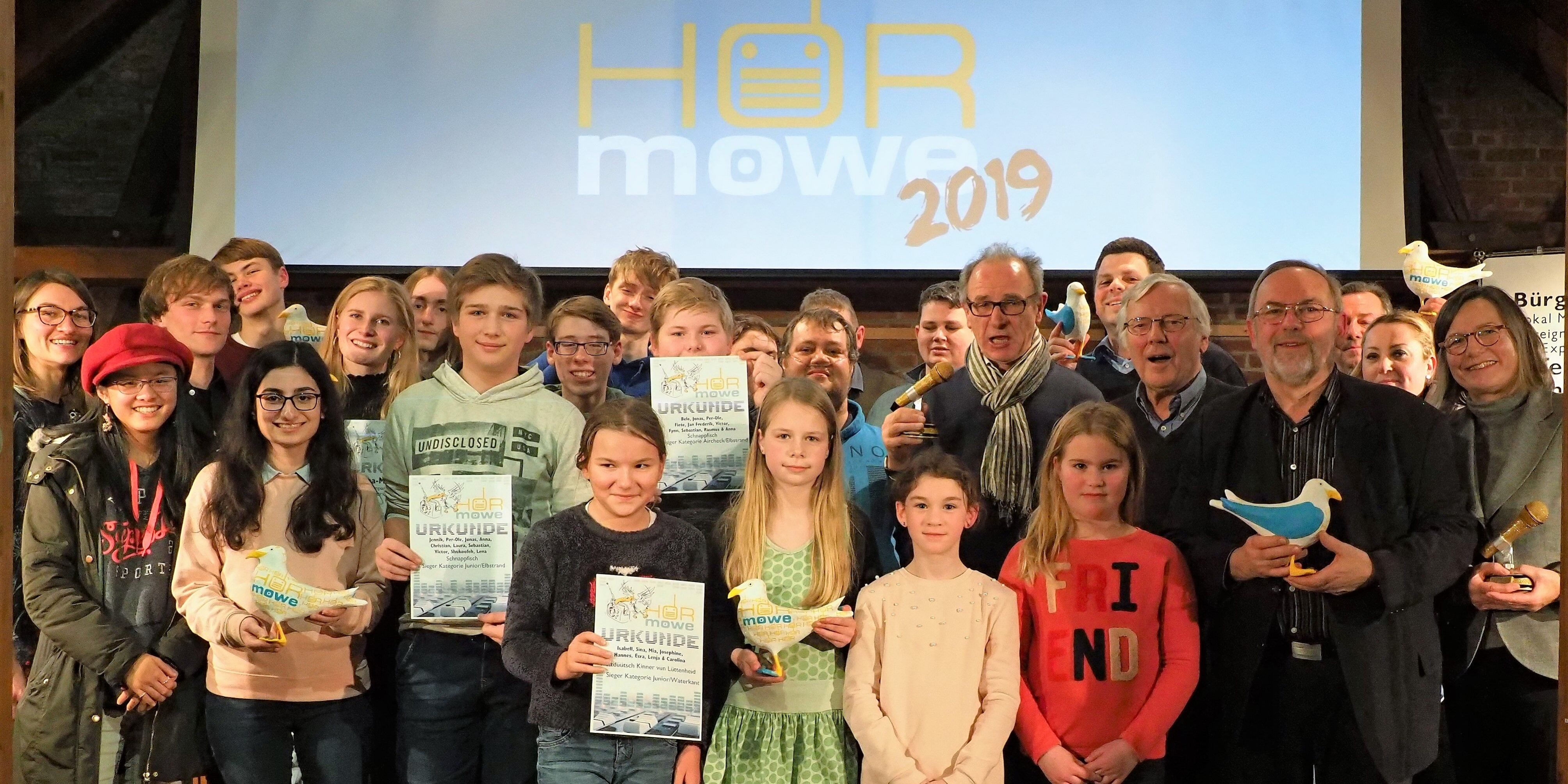 Unter den ersten Preisträgern in der Kategorie „Junior“ war erneut die Plattdeutsch AG der Grundschule Lüttenheid mit ihrer Radiosendung über Klaus Groth. Die Hamburger Redaktion „Schnappfisch – Schüler machen Radio“ wurde in dieser Kategorie mit dem Regionalpreis Elbstrand für eine Live-Sendung zum Thema „Fan sein“ ausgezeichnet. Dass sich die Hamburger Nachwuchsreporter nicht hinter den Profis verstecken müssen, zeigte sich gleich in der nächsten Kategorie. Auch der Preis für den besten Aircheck konnte die Schnappfisch-Redaktion mit an den Elbstrand nehmen, während Gina-Marie Kock für ihre Moderation bei „CampusRadioAktiv“ auf KielFM eine Hörmöwe mit an die Waterkant in die Landeshauptstadt nahm.