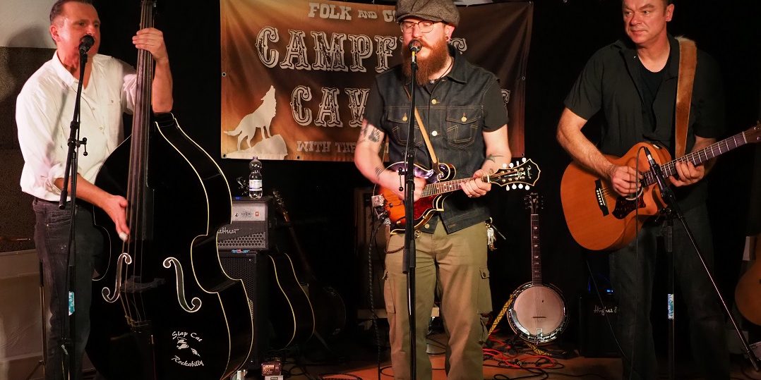 Die Band „Campfire Cavaliers“ aus Nordfriesland nahm die Chance eines Funkhauskonzertes mit Live-Übertragung über die WestküsteFM Frequenzen gerne an und rockte mit ihrem Mix aus Rockabilly, Folk und Bluegrass 90 Minuten die Bühne.